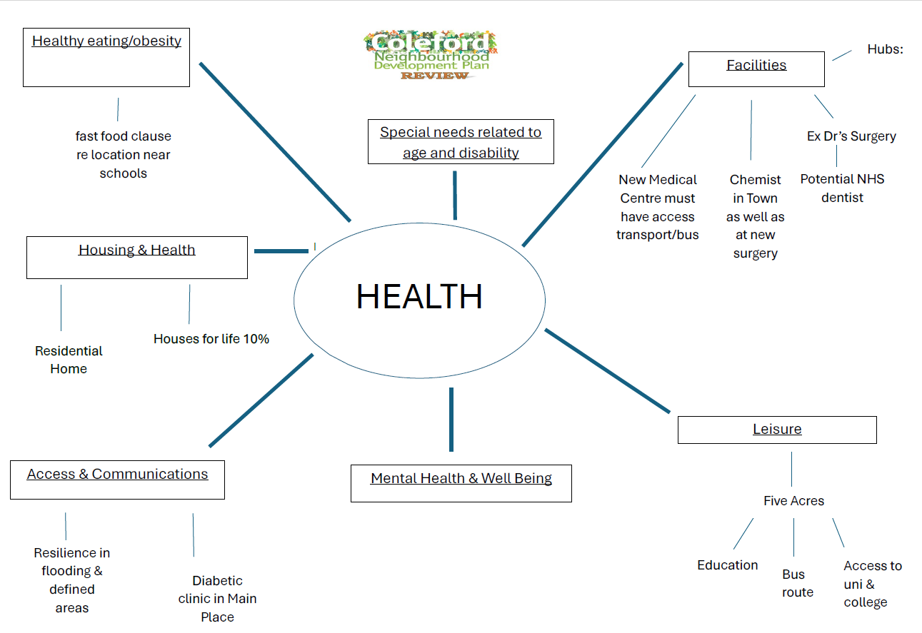 Housing: Following the District Council’s recent decision re Housing Strategy we know that some new homes will come to Coleford. Our NDP will be a very useful tool for influencing decisions re housing allocations and types.