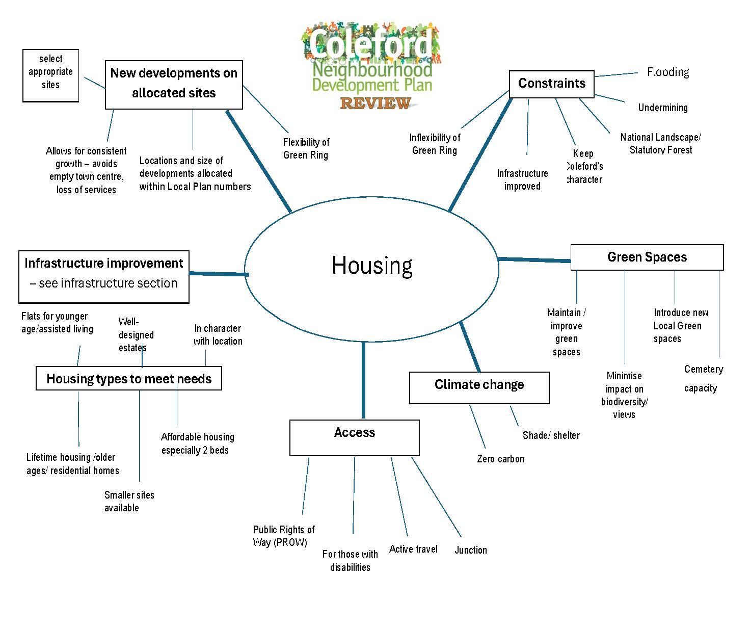 Housing: Following the District Council’s recent decision re Housing Strategy we know that some new homes will come to Coleford. Our NDP will be a very useful tool for influencing decisions re housing allocations and types.
